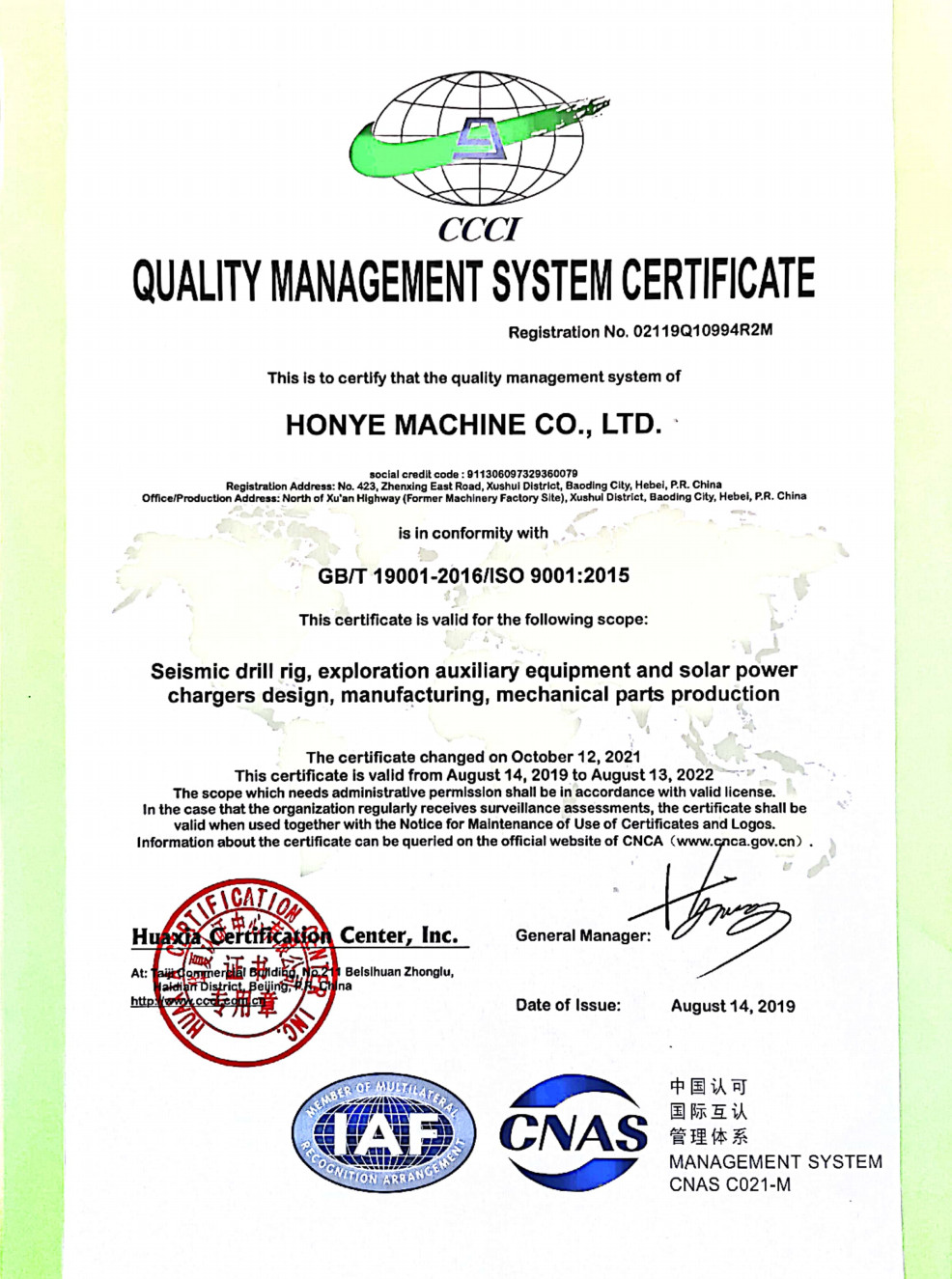 In 1964, the founder: BGP, China National Petroleum Corporation has set up the “Machinery Factory of BGP CNPC”, which was named as “Baoding Hongye Petroleum Prospecting Machinery Manufacturing Co. Ltd” and now named as “HonYe Machine Co., Ltd.” . In 2001, HonYe Machine had made the shareholding change from a purely state-owned company becoming a share company. Now BGP, CNPC is the biggest share holder of HonYe Machine.