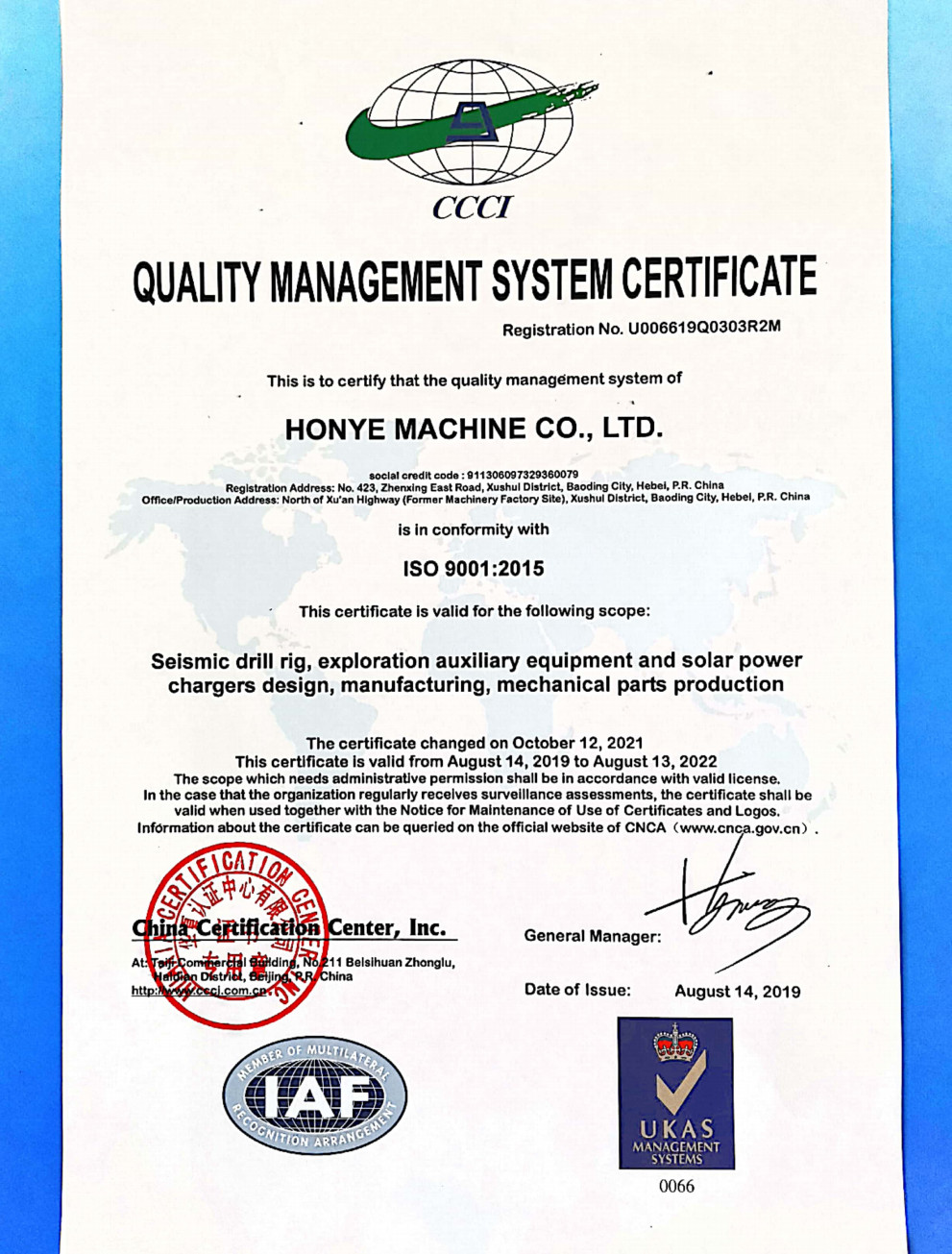 Since 1998, HonYe Machine has obtained the ISO 9001 certification. All the production procedures are under strict quality control based on the ISO 9001 regulations.